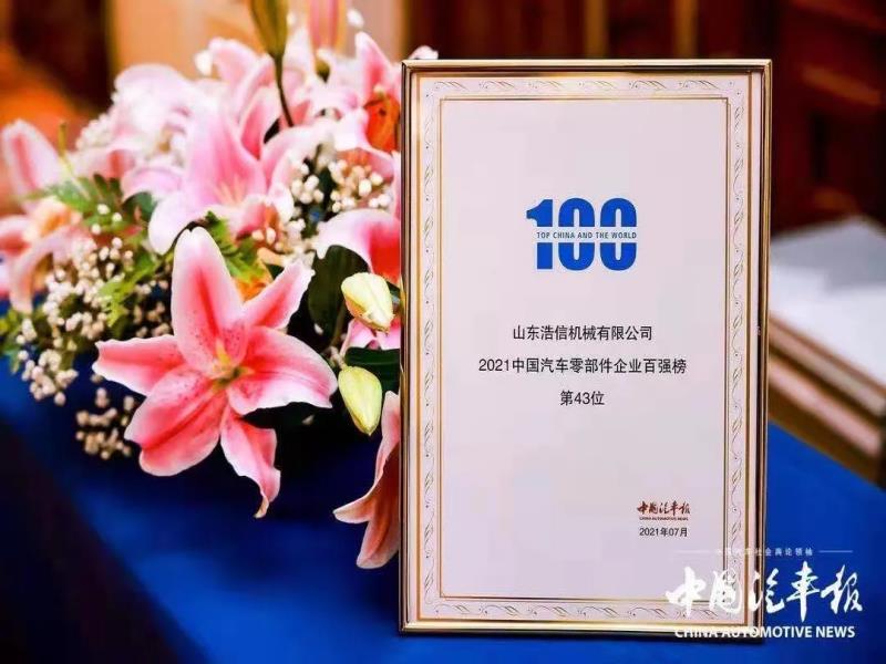 榮譽|浩信集團(tuán)再次榮登中國汽車零部件企業(yè)百強(qiáng)榜